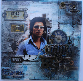 First I attached the chipboard to the paper and then I distressed it with 'vintage photo' ink.